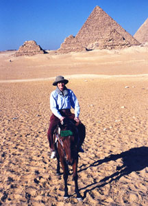 Our Greek friend Ioannis Liritzis, who is an archaeometrist, and Robert in front of the pyramid of Cephren in Egypt.