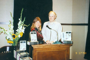 We gave a talk about the book at Barnes & Noble bookstore in New York and this was taken beforehand with copies of the book piled each side of us. It was a nerve-wracking evening for me as it was the first time I had ever stood up and spoken in front of an audience. Robert was unwell and had to sit down and told me to get on with it! There were several old friends in the audience and a very strange woman in the middle who kept shaking her head in disapproval whenever I caught her eye and mouthing the word “NO”. It really un-nerved me because I thought she must be an academic who was going to prove me wrong. She turned out to be a bit of a nut who asked me about all the animals afterwards and said that they were the important things, not people, and when I asked her name she said very firmly, “Shirley Temple”. |